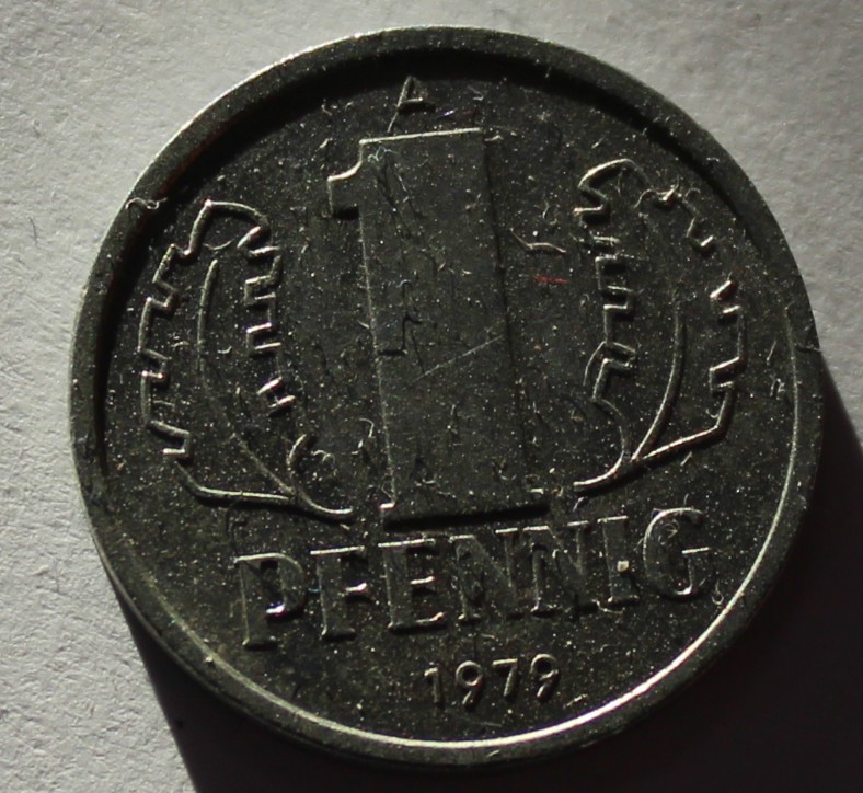 1 пфенниг 1979г. ГДР. А, алюминий, состояние VF.