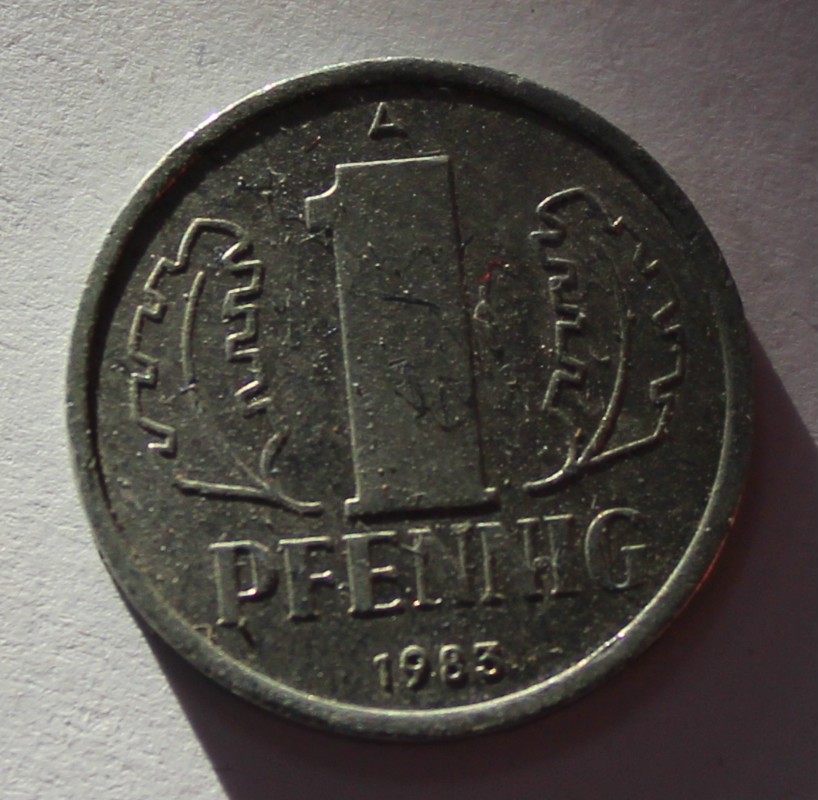 1 пфенниг 1983г. ГДР. А, алюминий, состояние VF.