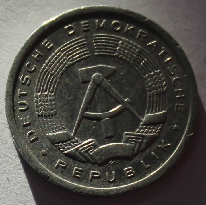 1 пфенниг 1977г. ГДР. А, алюминий, состояние VF.