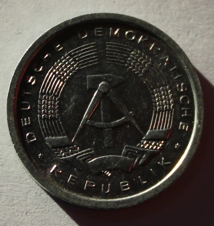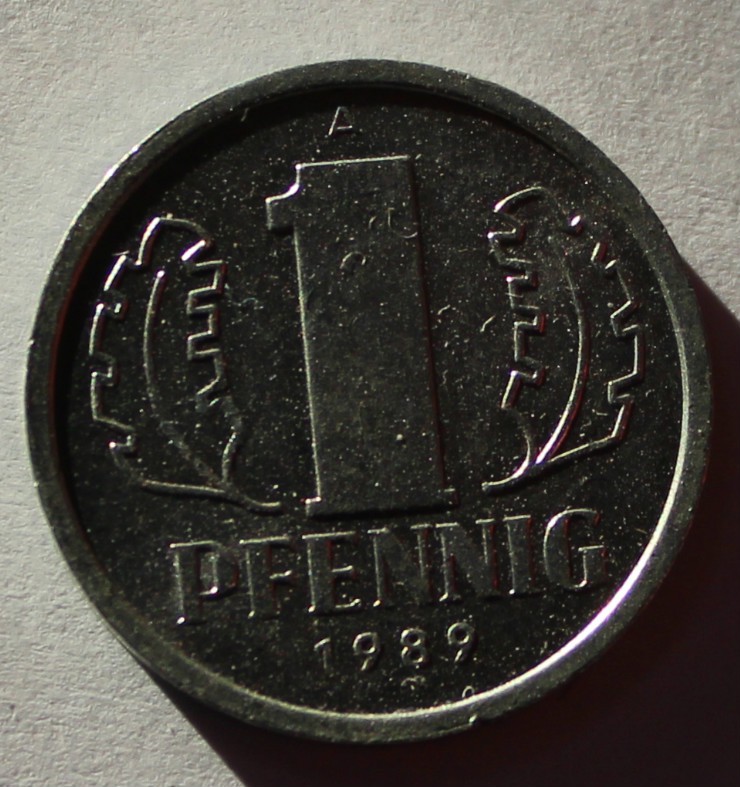 1 пфенниг 1989г. ГДР. А, алюминий, состояние XF.