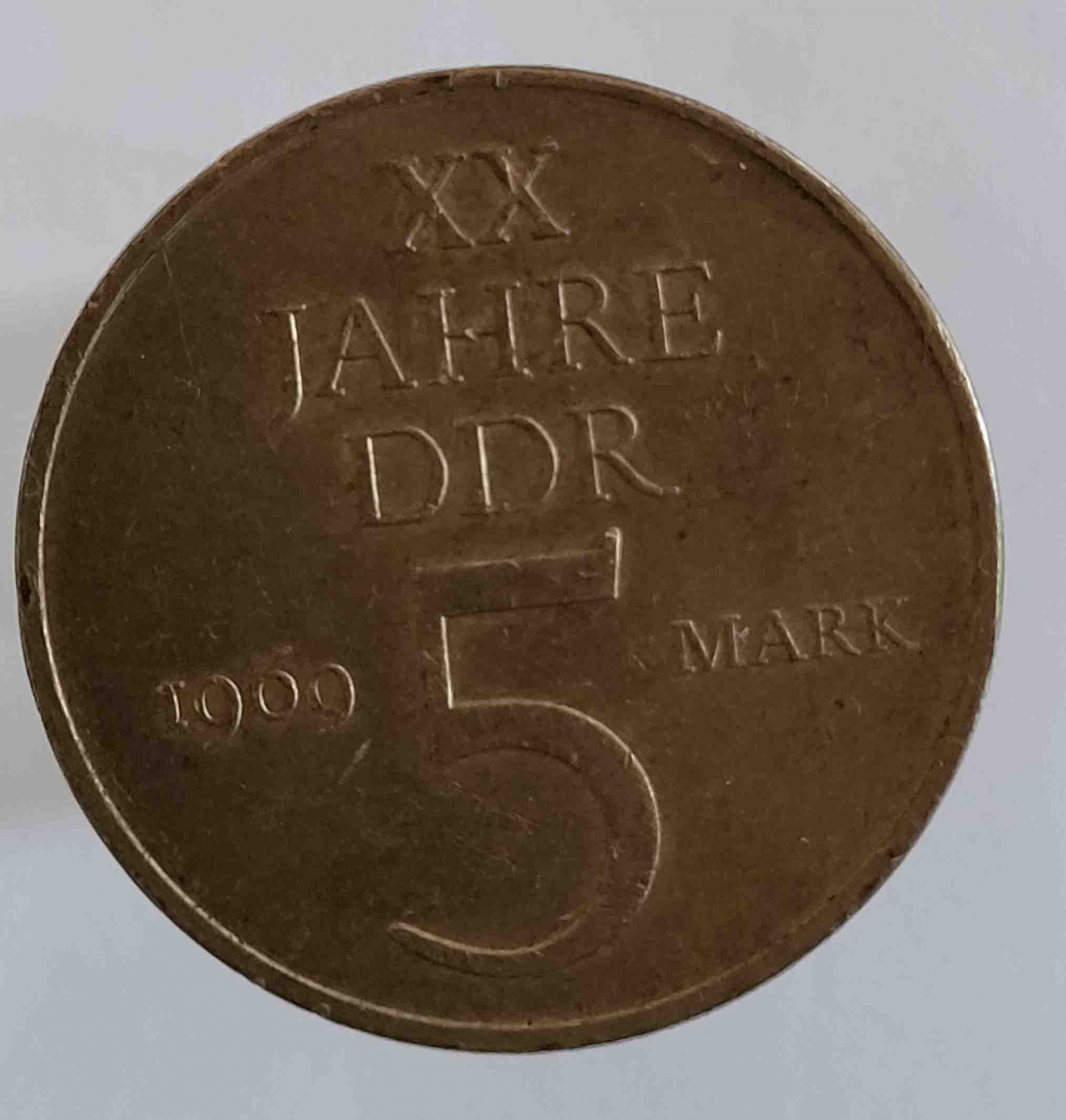 5 марок 1969г. ГДР. 20 лет образования ГДР, состояние VF-XF