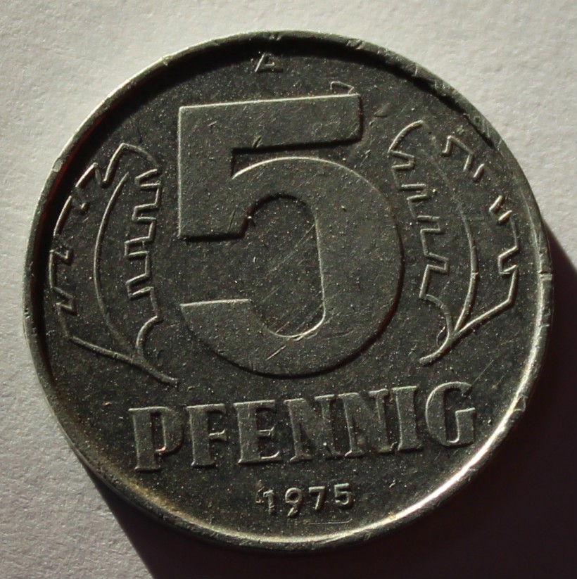 5 пфеннигов 1975г. ГДР. А, алюминий, состояние VF