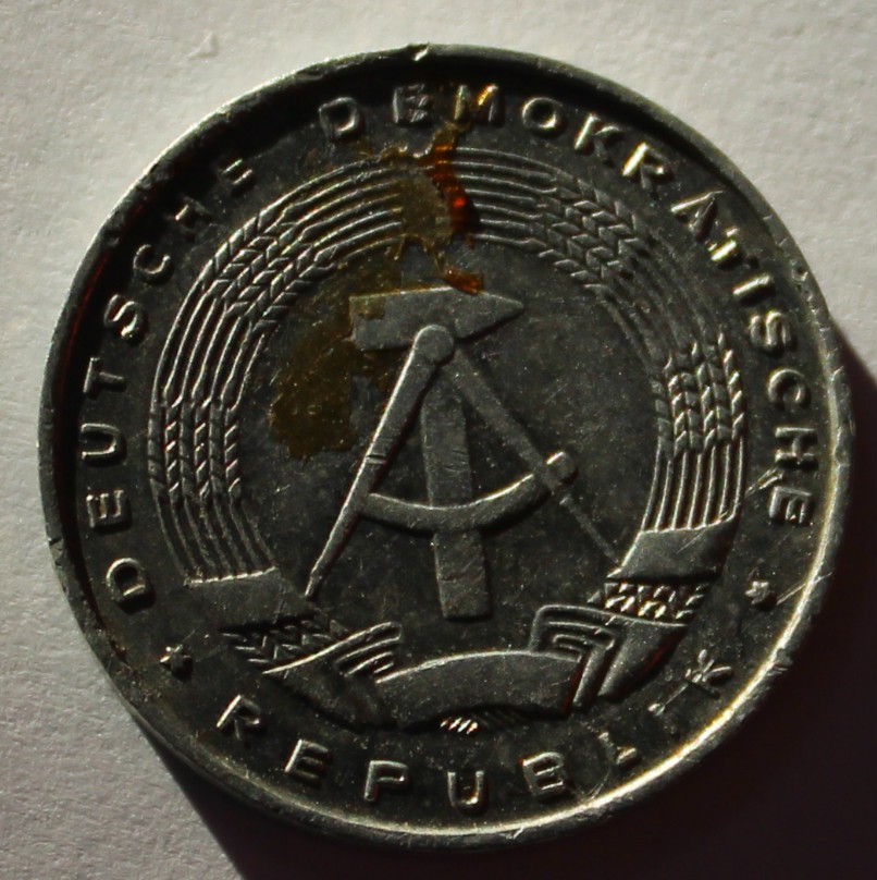 1 пфенниг 1977г. ГДР. А, алюминий, состояние VF.