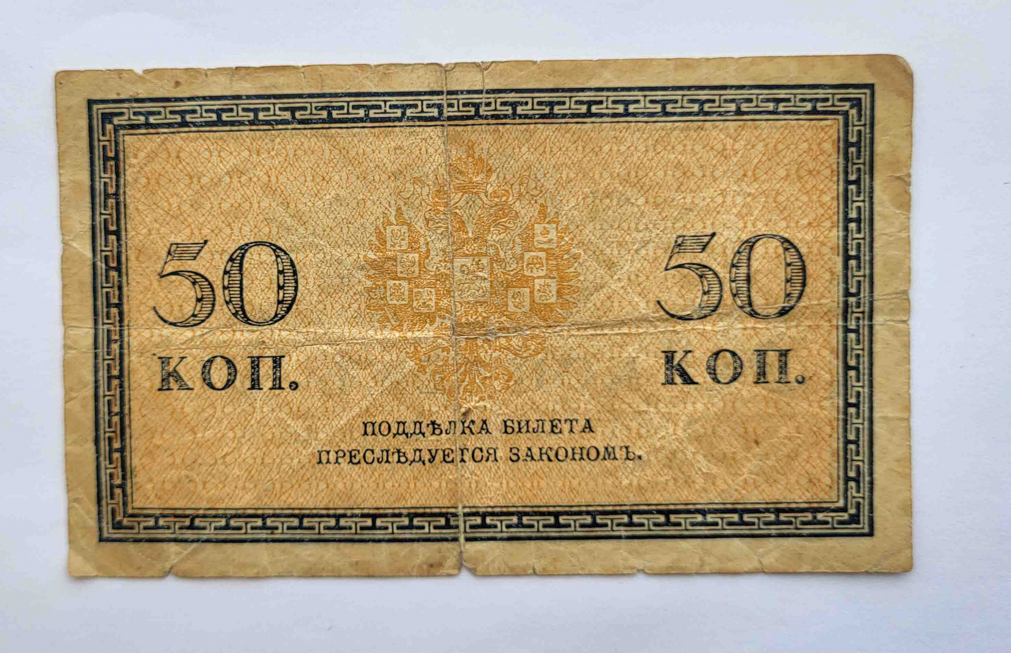 Банкнота 50 копеек 1915г. Казначейский разменный знак, имеет хождение наравне с разменной серебряной монетой, из обращения.
