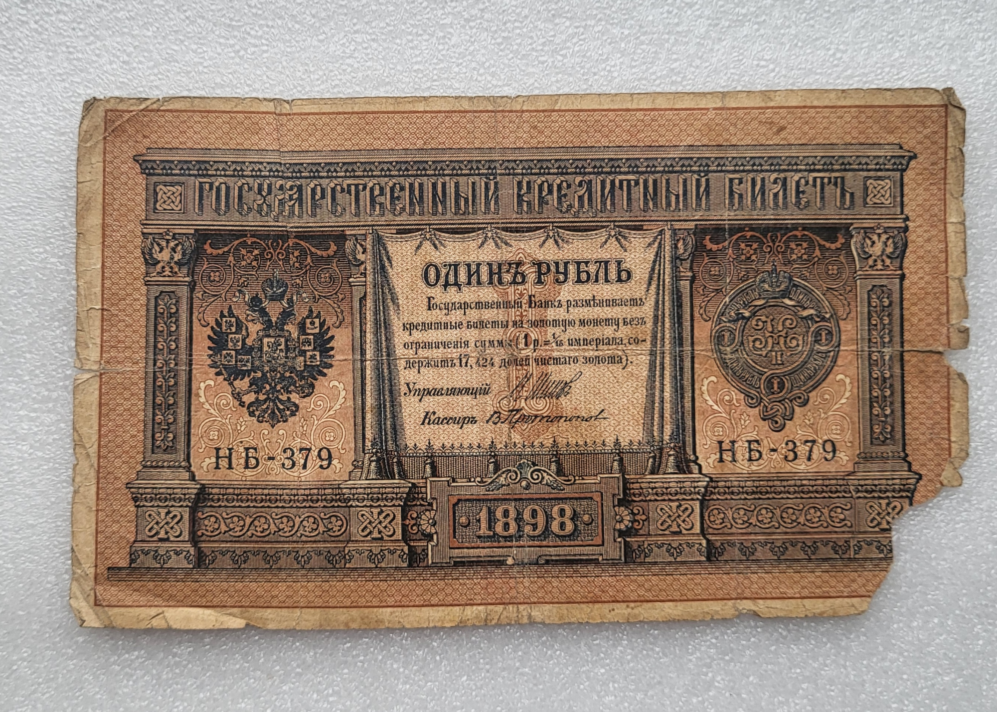 Банкнота один рубль 1898 г. Государственный кредитный билет НБ-379