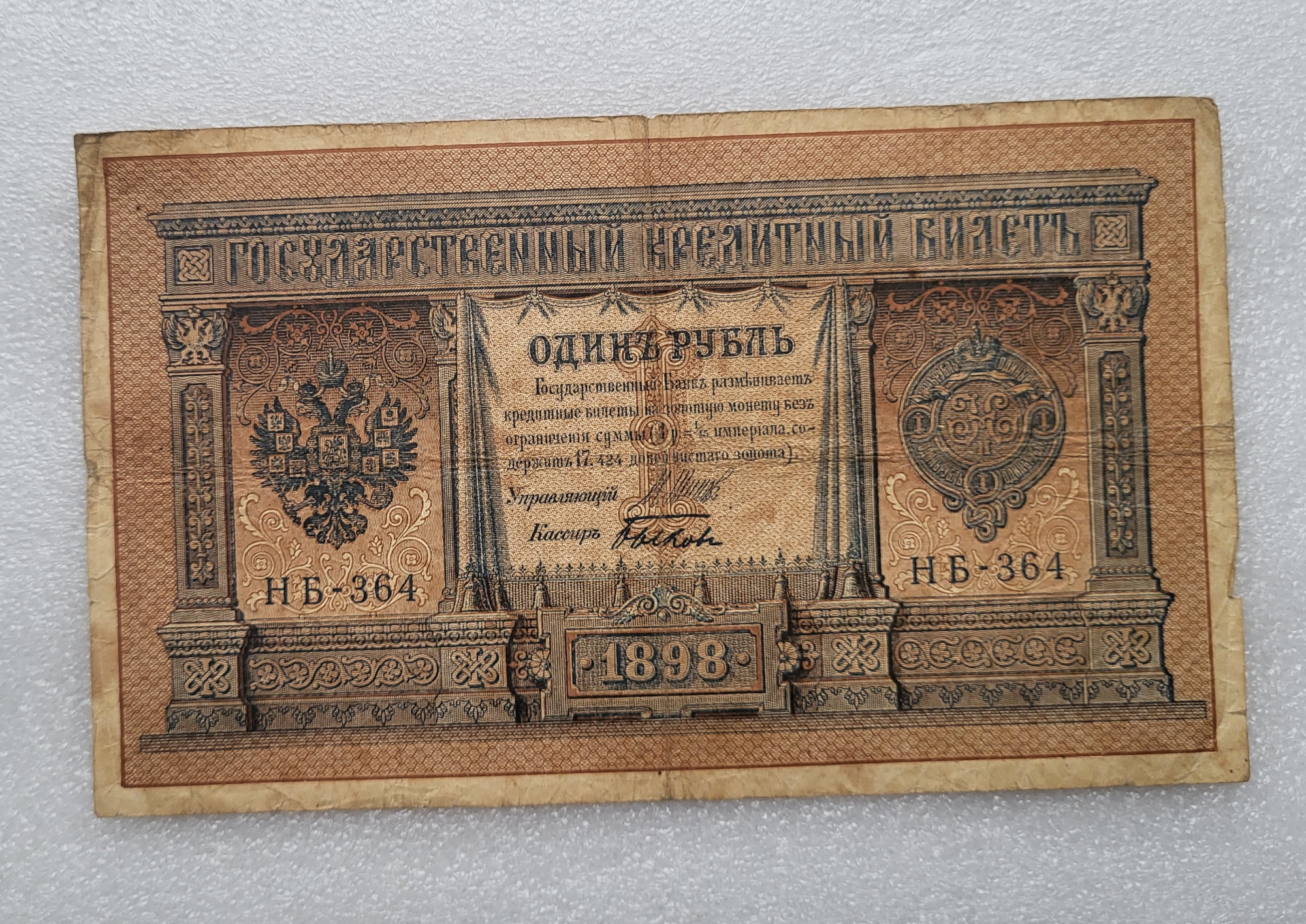 Банкнота один рубль 1898 г. Государственный кредитный билет НБ-364