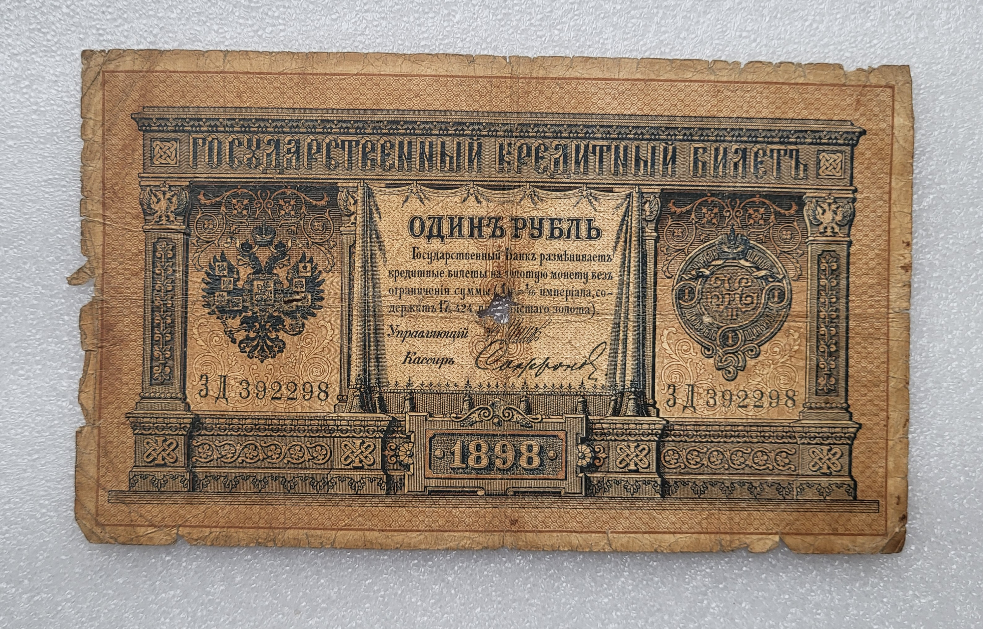 Банкнота один рубль 1898 г. Государственный кредитный билет ЗД-392298