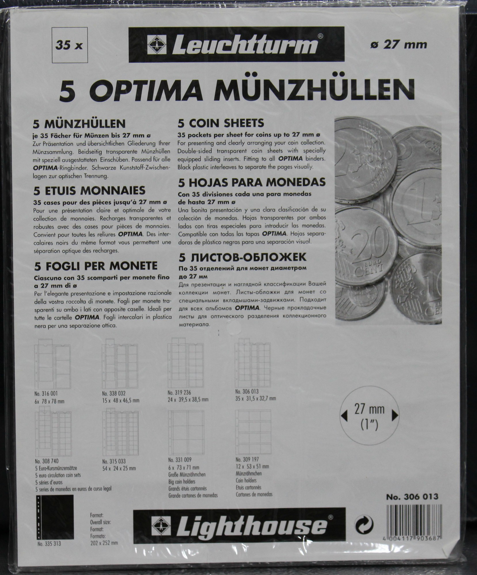 Лист Оптима М 35 , для 35 монет, диаметром 27мм. Размер листа 202х252мм. Германия.