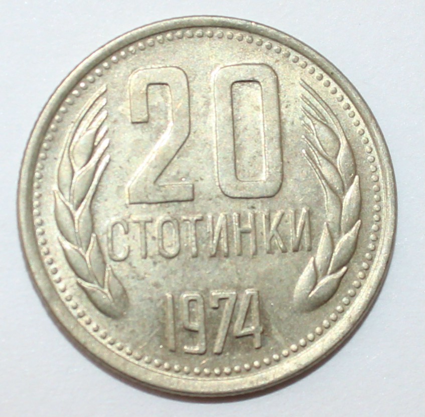 20 стотинок 1974г. Болгария,состояние VF-XF