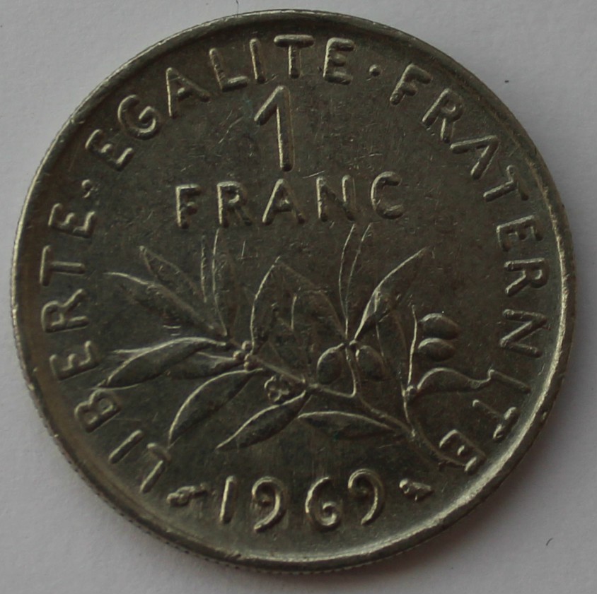 1 франк 1969г. Франция, состояние VF-XF