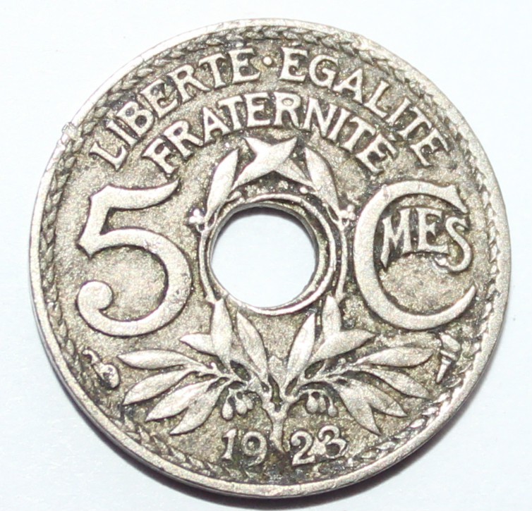 5 сантим 1923г. Франция, никель,состояние VF