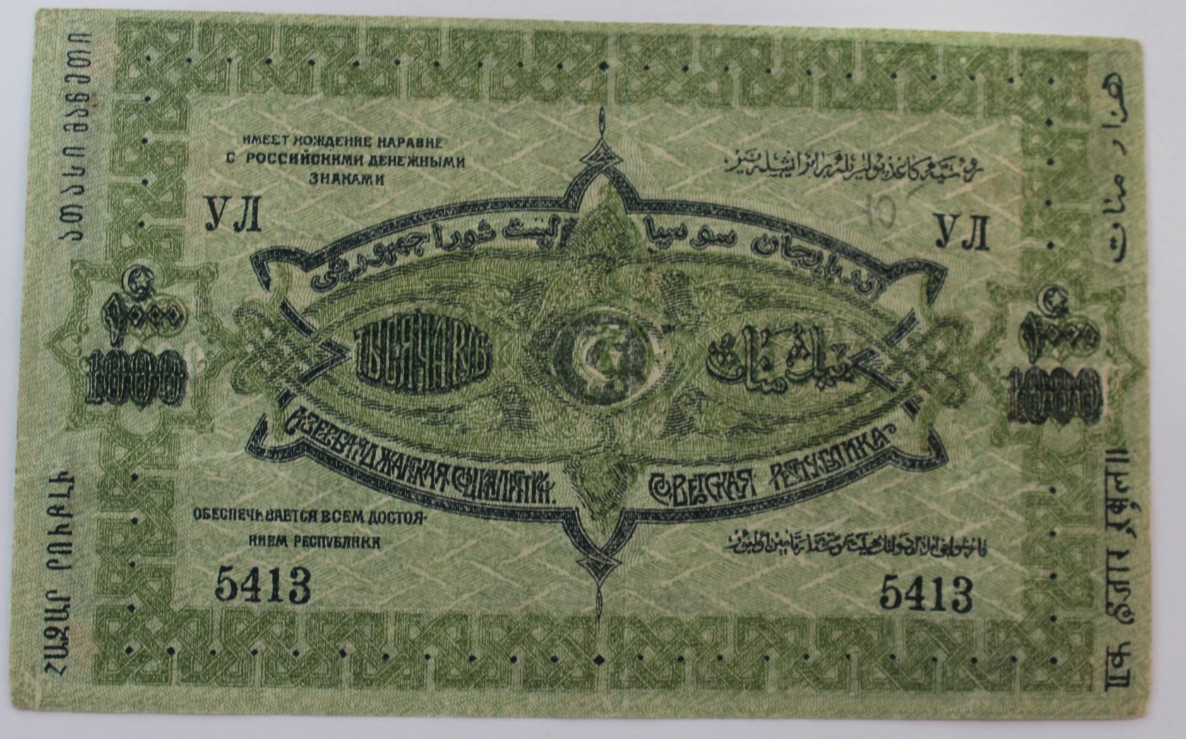 Банкнота 1000 рублей 1920г. Азербайджанская Социалистическая Советская Республика, состояние aUNC.