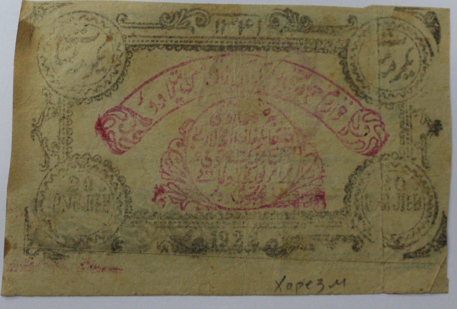 Банкнота 20 рублей 1922г. Хорезмская Республика, шрифт зеленый, состояние VF.