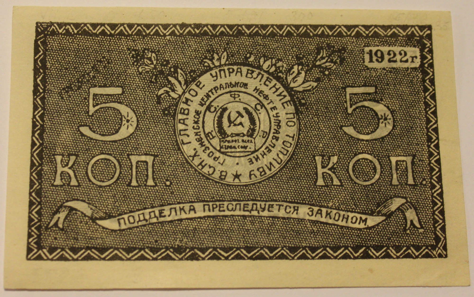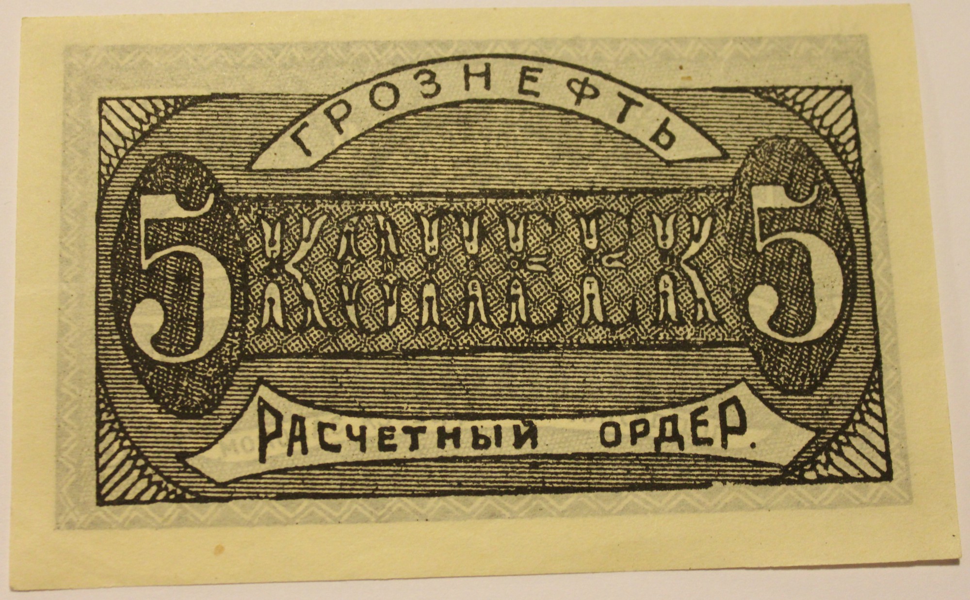Банкнота 5 копеек 1922г. Расчетный ордер ГРОЗНЕФТЬ, состояние aUNC