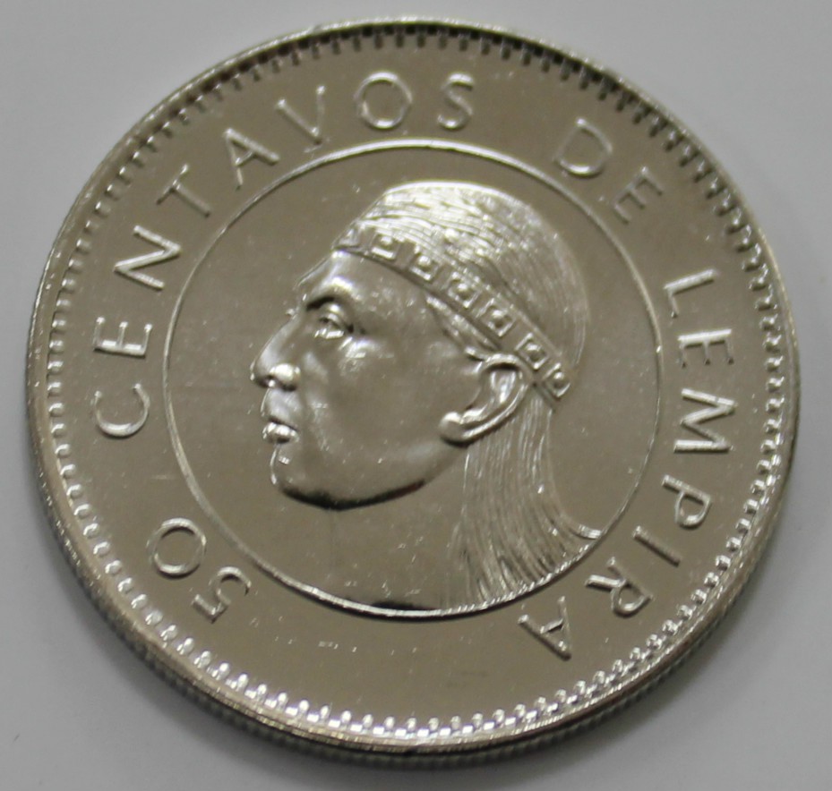 Банкнота 1 лемпира 2014г. Гондурас. Индеец, новый тип с кодом Брейля для слепых,состояние UNC