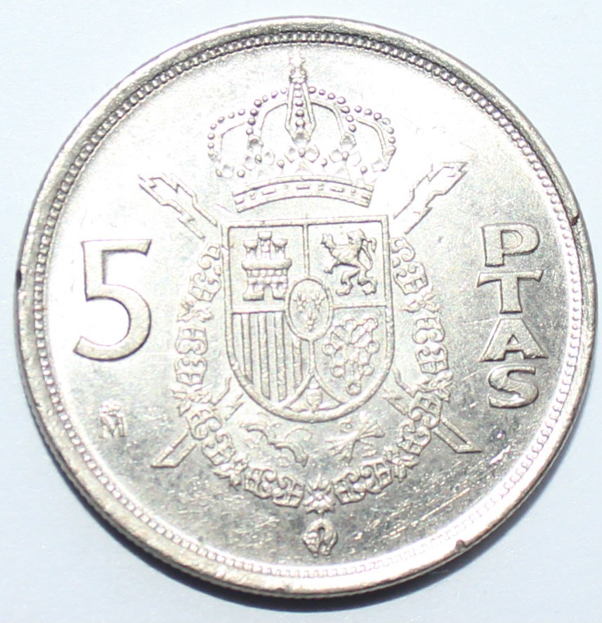5 песет 1984г. Испания. Хуан Карлос, никель, состояние UNC