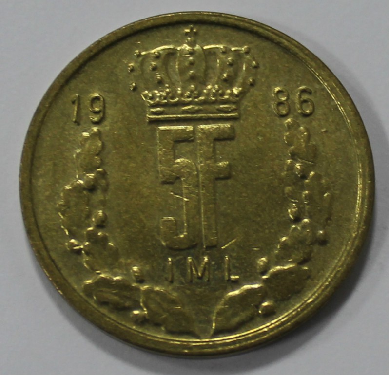 5 франков 1986г. Люксембург, алюминиевая бронза, состояние XF.