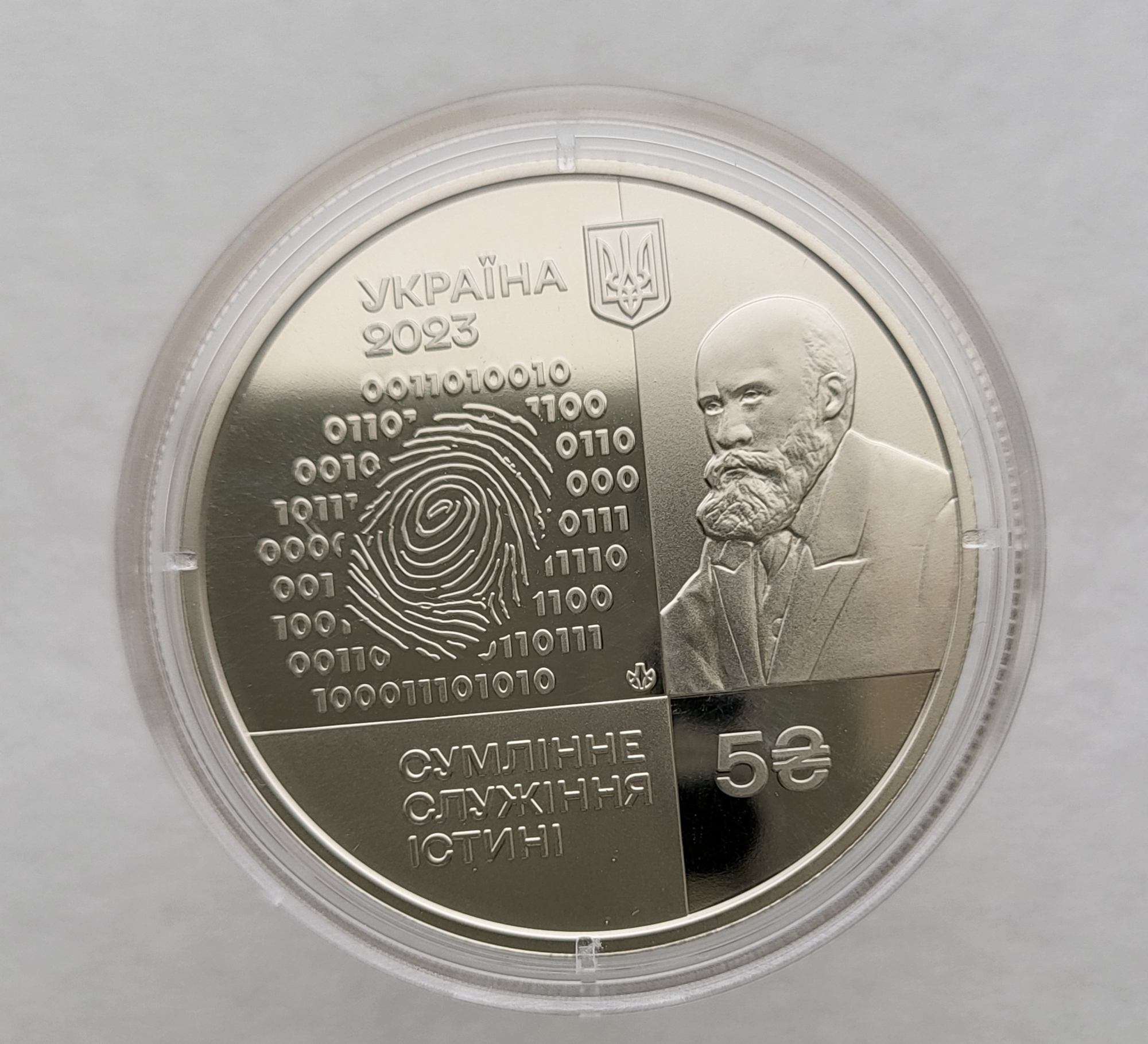 5 гривен 2023г. Украина. 100 лет научный центр " Институт судебных экспертиз им. засл. проф. Бокариуса" монета новая , АЦ, в капсуле.