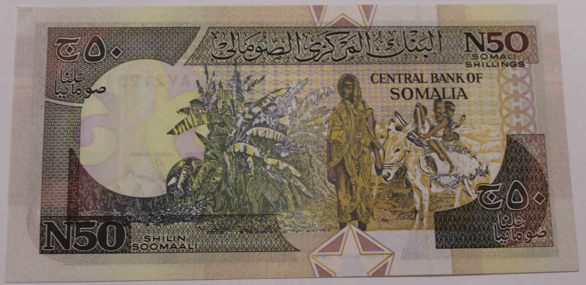 Банкнота 50 шиллингов 1991г. Сомали, На осле, состояние UNC
