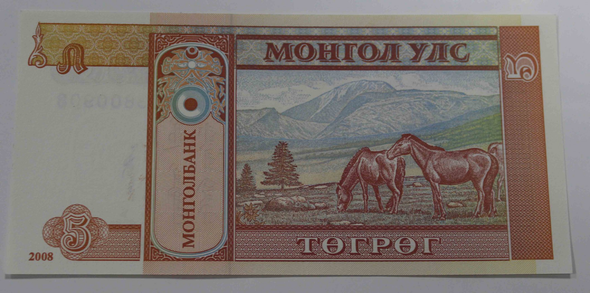 5 тугриков 2008г. Монголия, состояние UNC.
