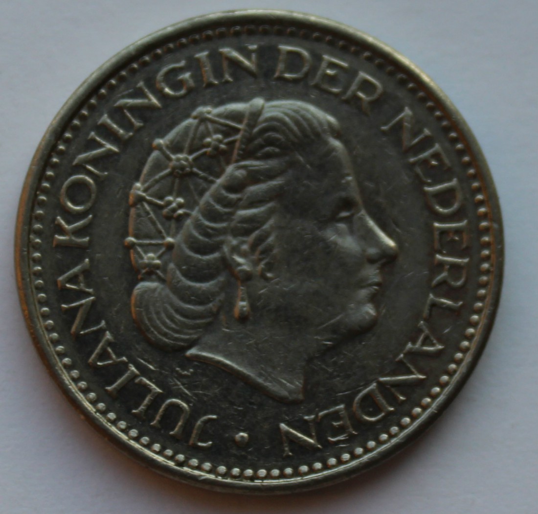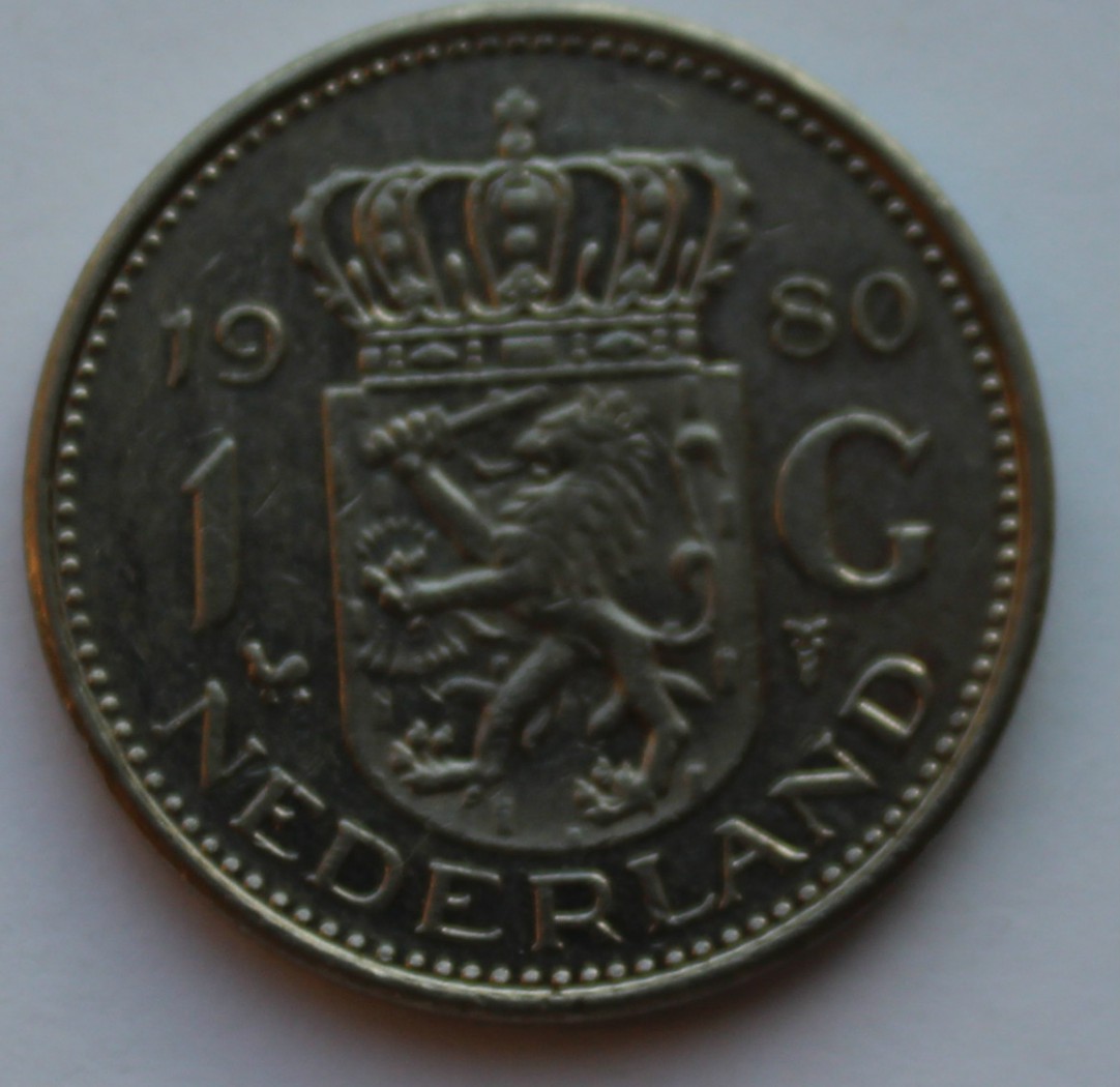 1 гульден 1980г. Нидерланды, никель, состояние VF