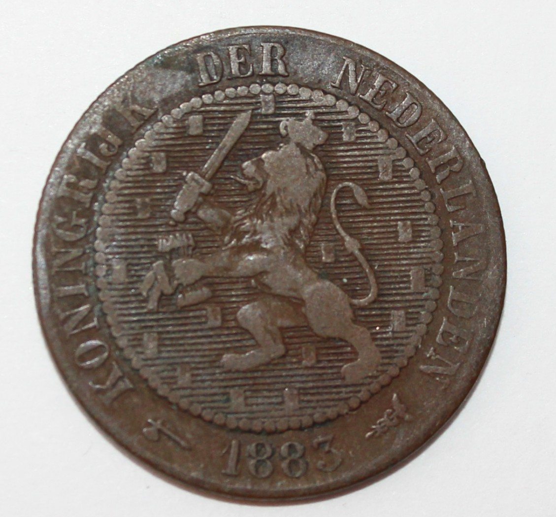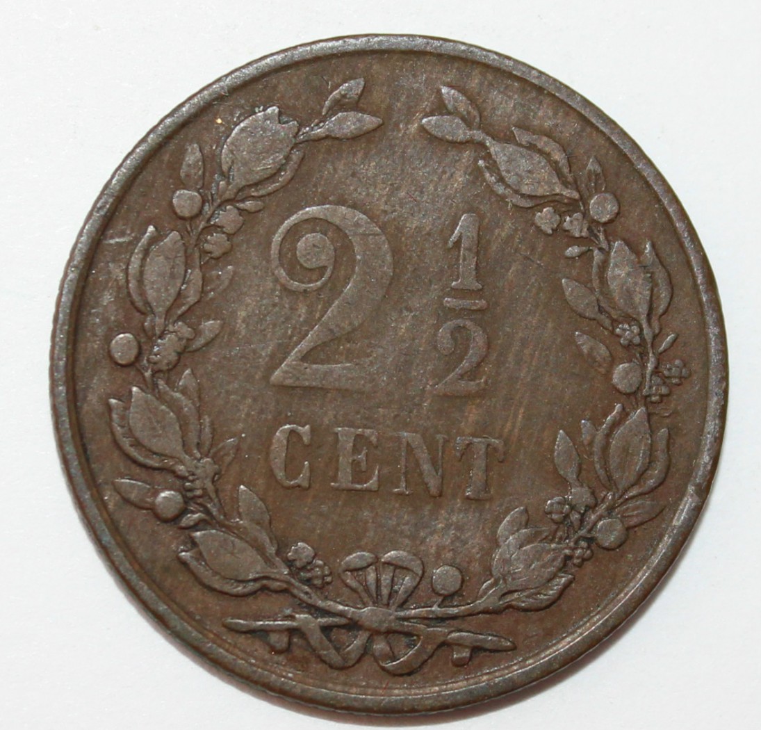 2.5 цента 1883г. Нидерланды, бронза, состояние VF-XF