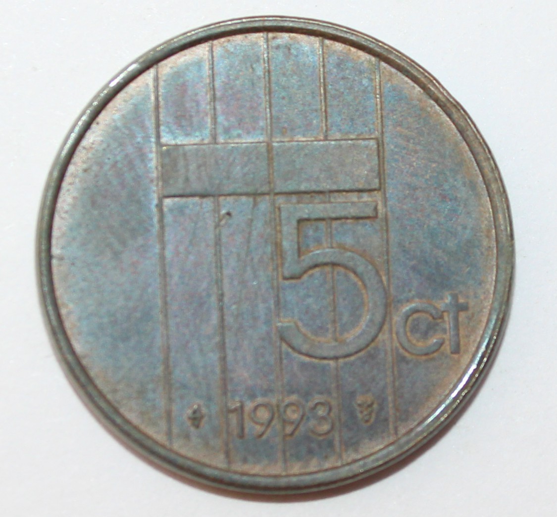 5 центов 1993г. Нидерланды, бронза, состояние VF