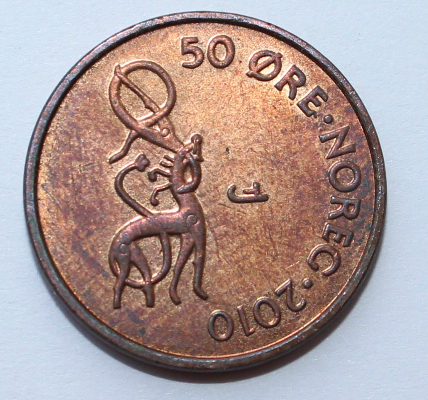 50 эре 2010г. Норвегия, бронза ,состояние ХF