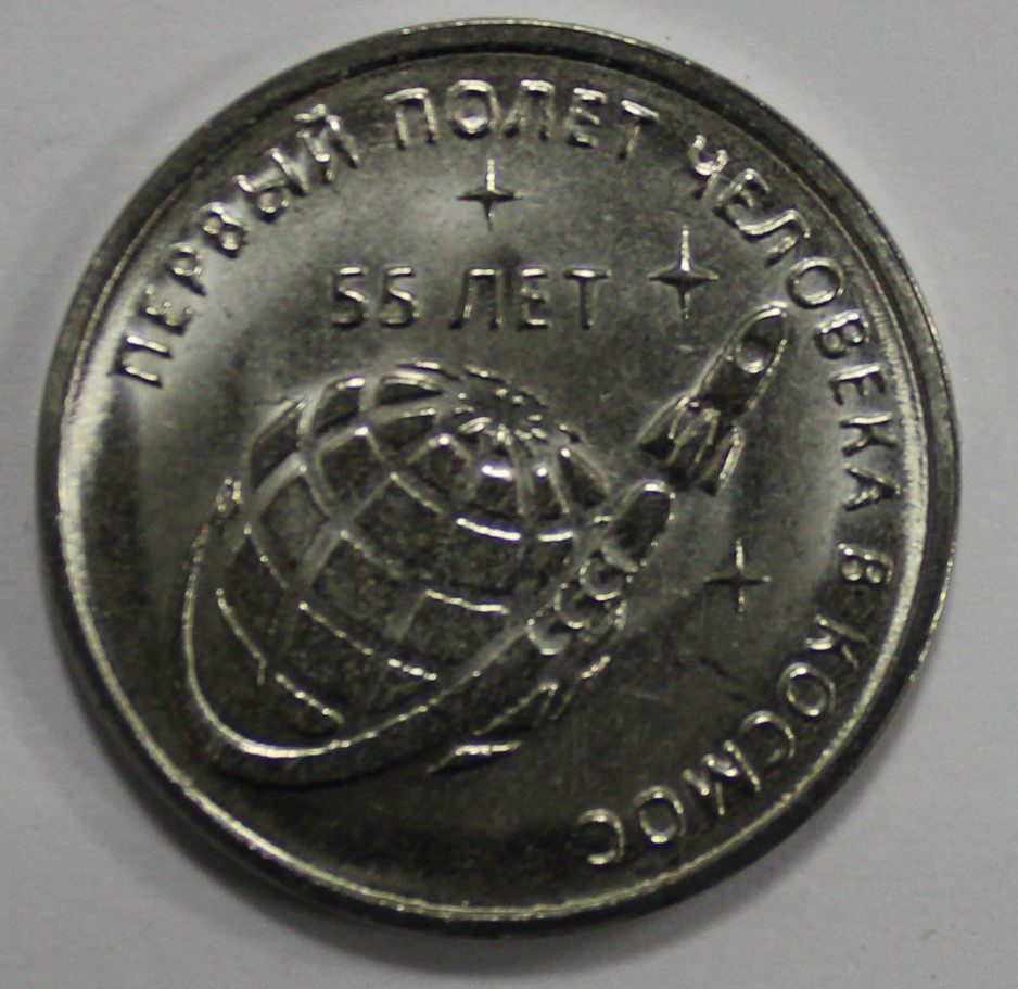 1 рубль 2016г. ПМР. 55 лет первому полету человека в космос, состояние UNC.