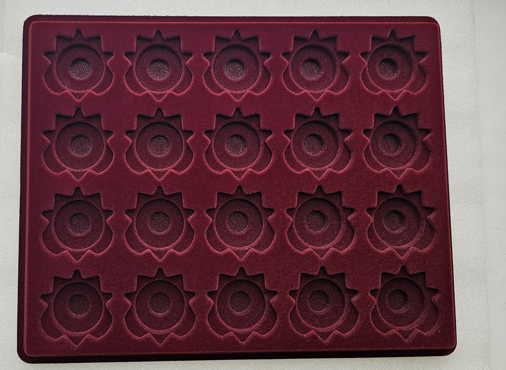 Планшет с крышкой (234х296х12мм) на 20 монет в капсулах, диаметр ячейки 42,5 мм. темно-бордовый. Капс 36-37