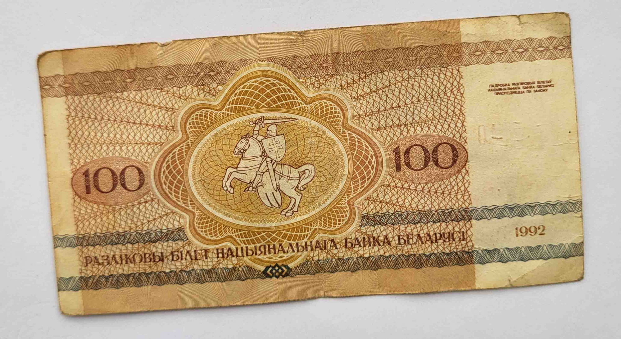 Банкнота 100 рублей 1992г. Беларусь. Зубр , из обращения.