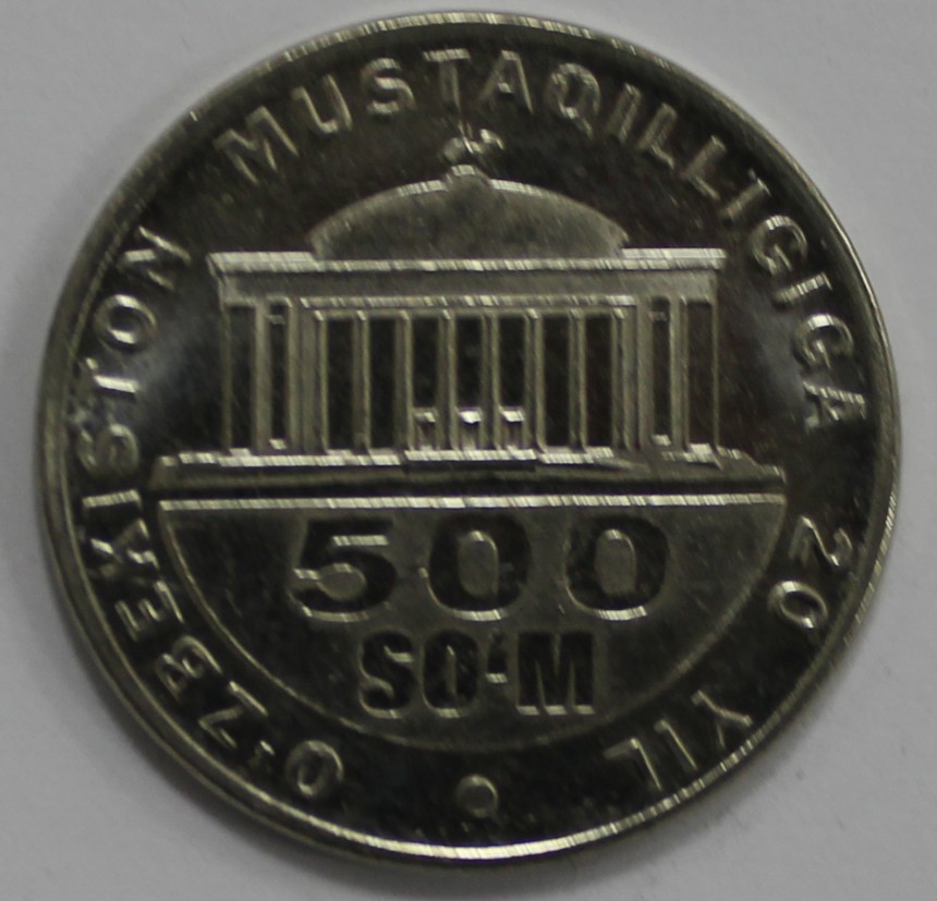 500 сум 2011г. Узбекистан. 20 лет независимости, никель, состояние UNC.