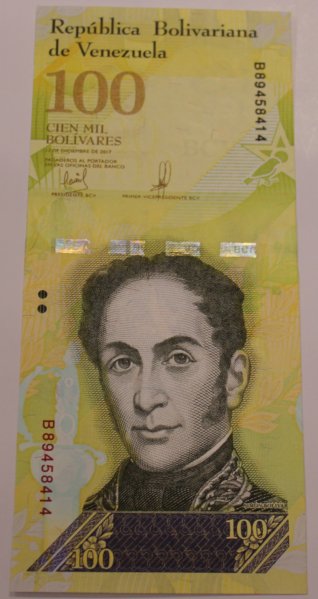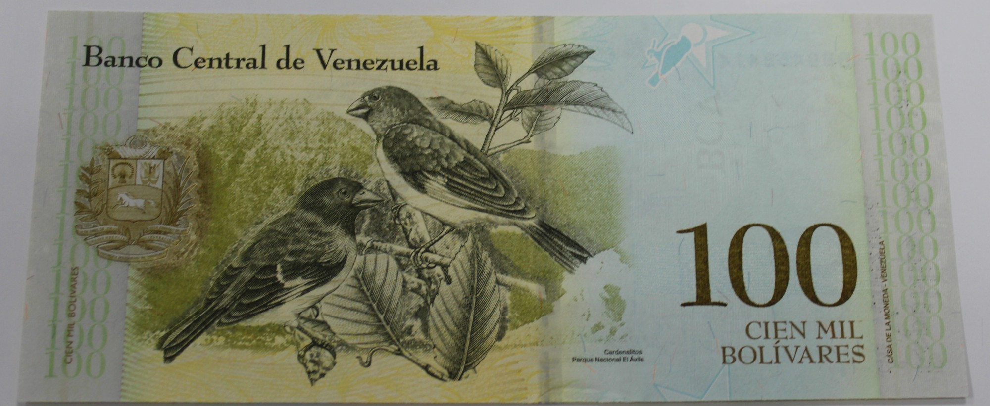 Банкнота 100000 боливар 2017г. Венесуэла. Птицы,состояние UNC