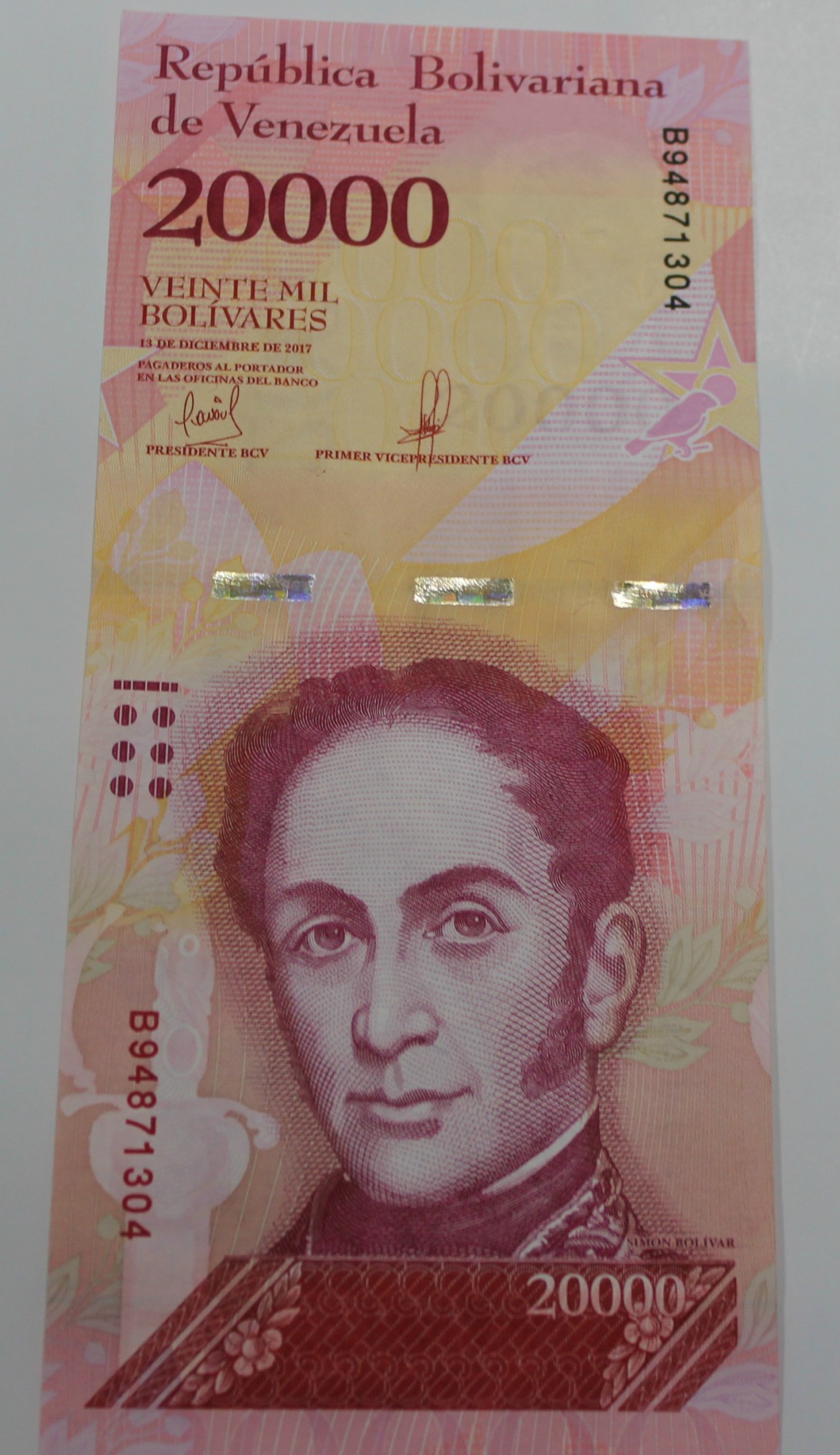 Банкнота 20.000 боливар 2017г. Венесуэла. Птицы,состояние UNC