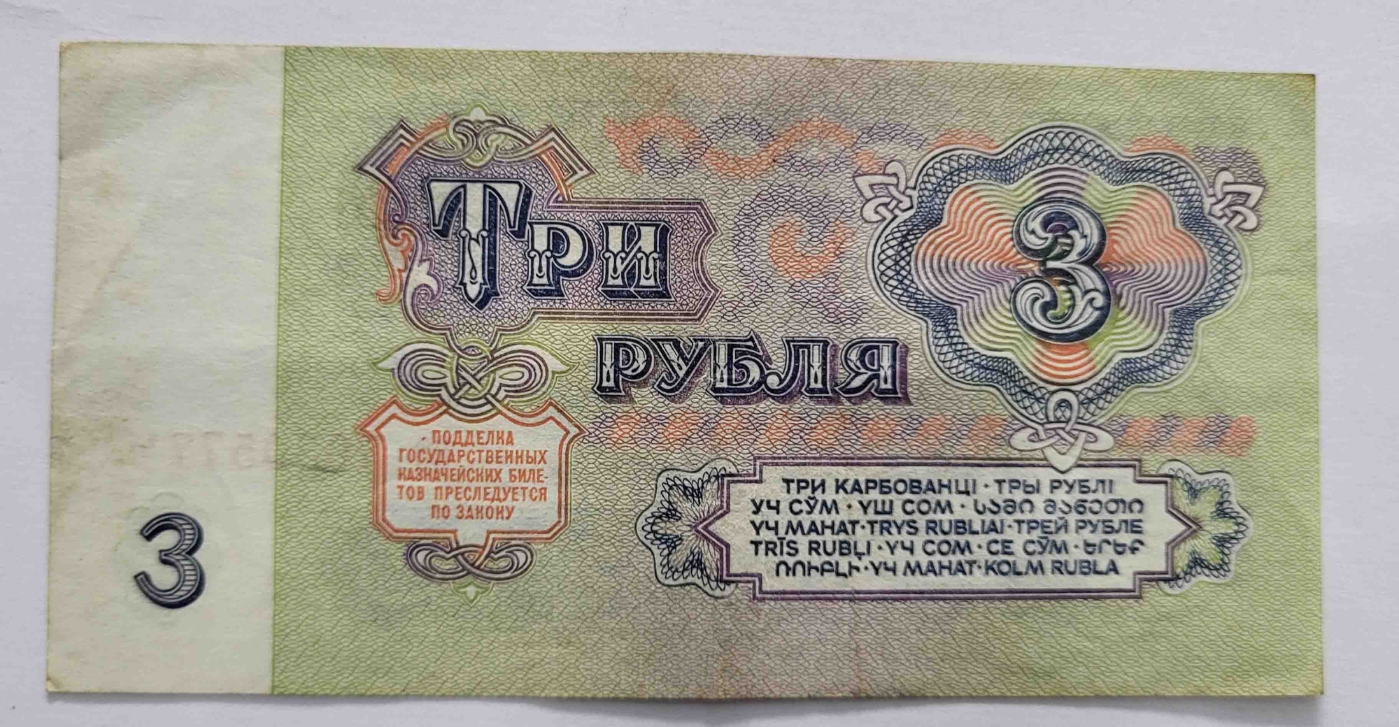 Банкнота 3 рубля 1961г. СССР, состояние VF-XF