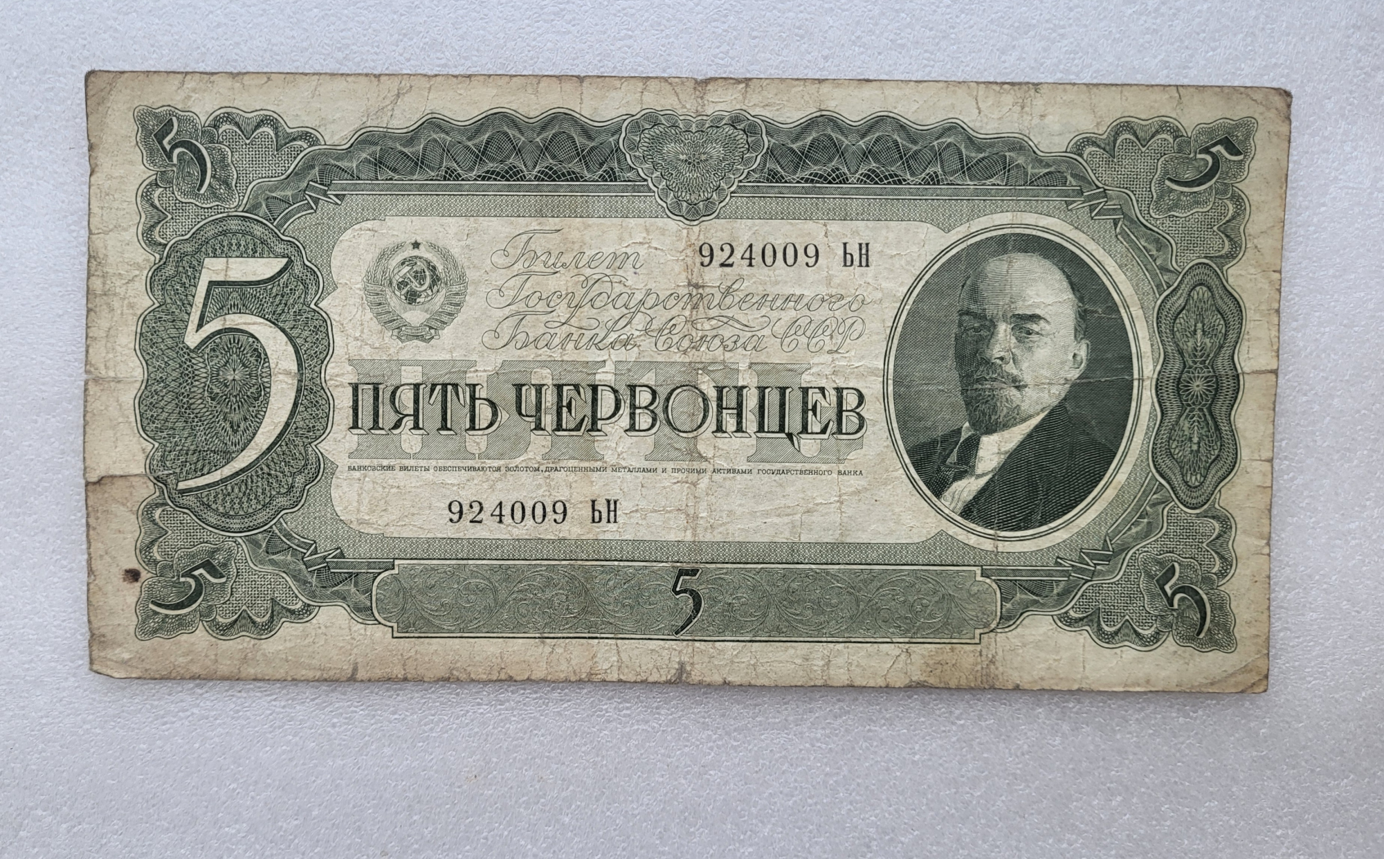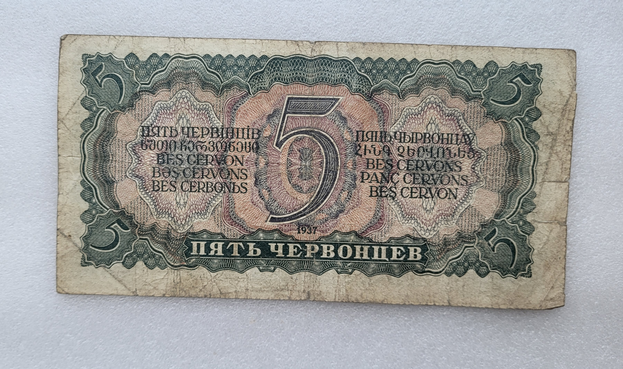 Банкнота 5 червонцев 1937г. Билет Государственного банка СССР 924009 ЬН , из обращения.