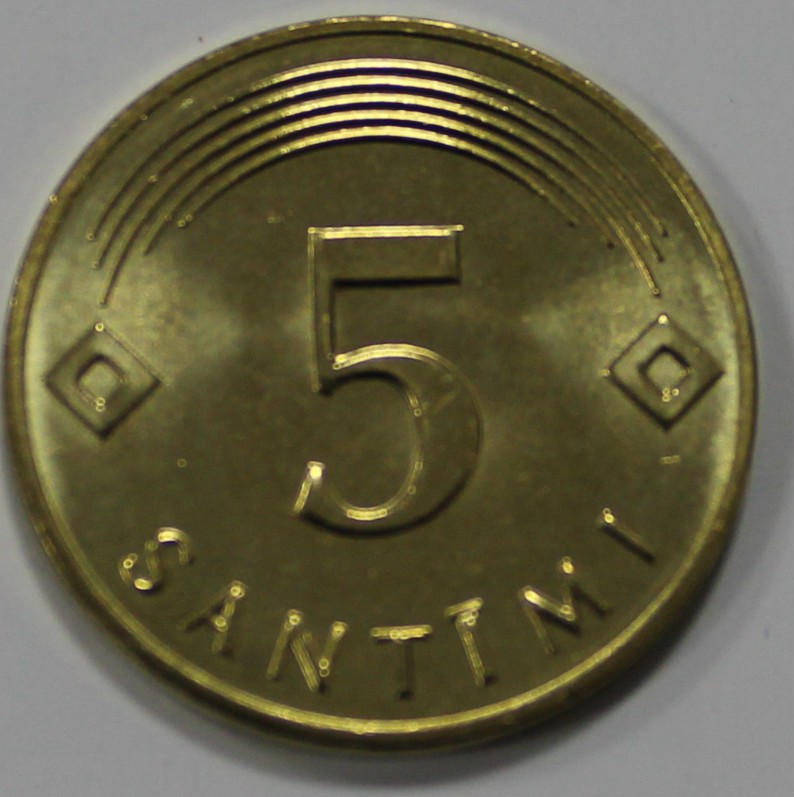 5 сантим 2009г. Латвия, состояние UNC