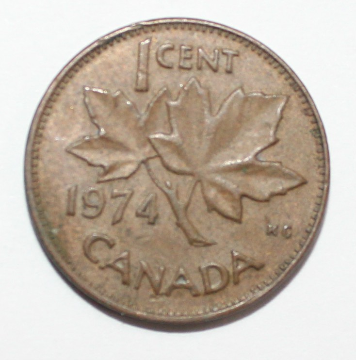 1 цент 1974г. Канада, бронза, состояние VF.