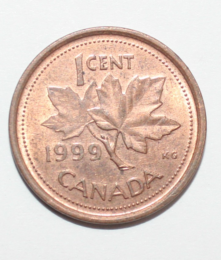 1 цент 1999г. Канада, плакированая медь, состояние VF-XF.