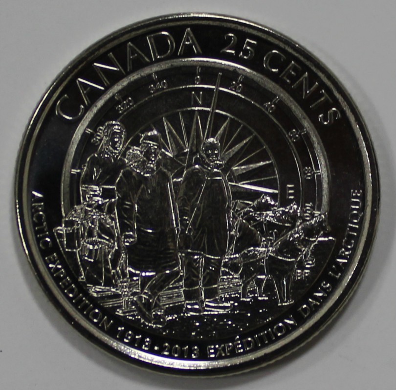 25 центов 2013г. Канада. Экспедиция в Арктику,состояние UNC