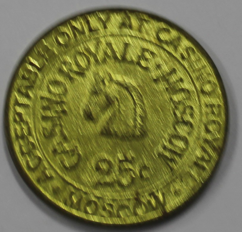 Жетон 2 рубль ( с ошибкой, т.к. жетоны изготавливались в Германии ) . Заказчик - Московский Банно-Прачечный трест. Использовались для оплаты услуг, в прачечных отелей Москвы, во время проведения Фестиваля Молодежи и студентов в 1957г.